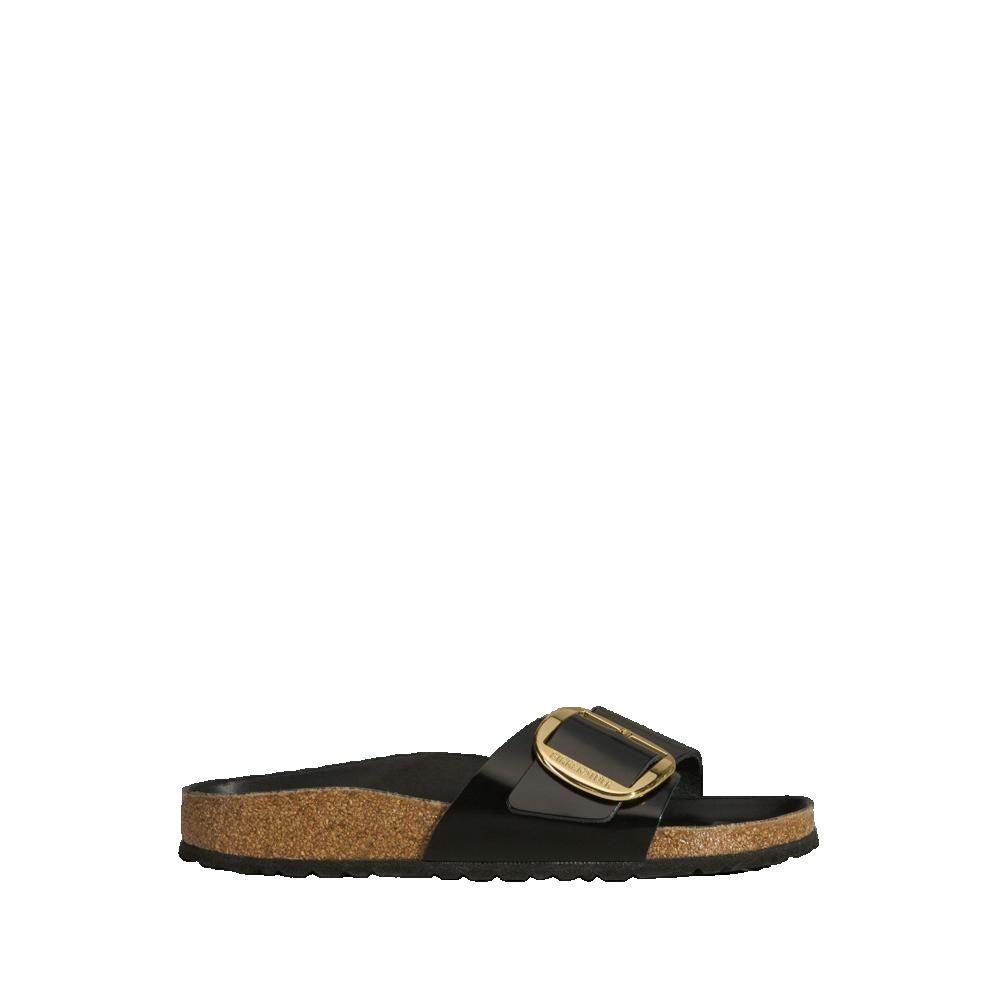 Sandali donna Birkenstock Madrid in pelle nera con fibbia regolabile e suola leggera in EVA.