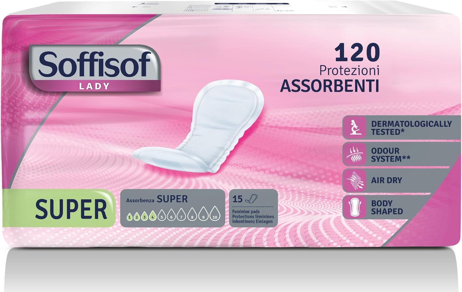 Soffisof Lady è la linea di assorbenti femminili per incontinenza leggera, progettata per offrire comfort, discrezione e protezione nelle situazioni quotidiane, anche nel post-parto. Grazie al loro design anatomico e ai materiali traspiranti, questi assorbenti garantiscono una sensazione di asciutto e sicurezza durante tutto il giorno.