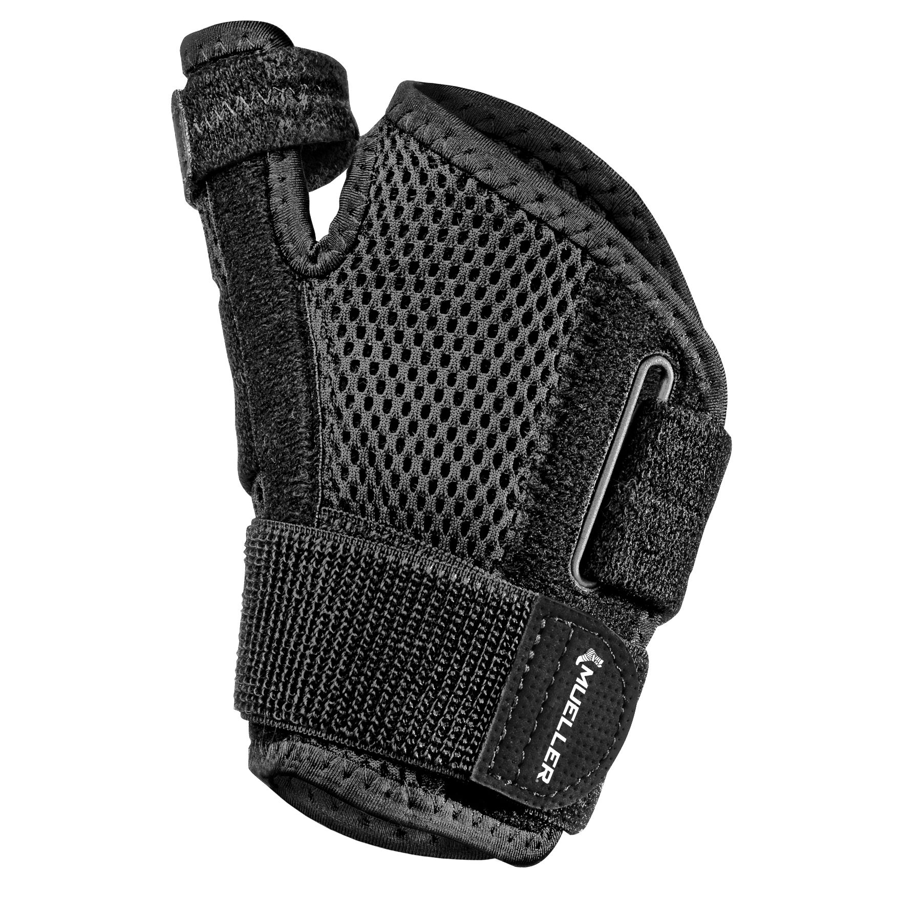 Questa benda di Mueller Sports Medicine aiuta a ridurre il dolore nell'articolazione del pollice, senza limitare la libertà di movimento delle dita. 3 cinture regolabili consentono un'impostazione flessibile e un adattamento alle esigenze specifiche e ai gradi di stabilizzazione. Stecche in plastica assorbenti agli urti e di supporto alla base del pollice aumentano il comfort e la protezione. Particolarmente adatta per: infortuni al pollice / all'articolazione del pollice, pollice da sci o lesioni ai legamenti laterali del pollice / rottura del legamento collaterale ulnare o distorsione. Il materiale è in tessuto antimicrobico e privo di lattice.