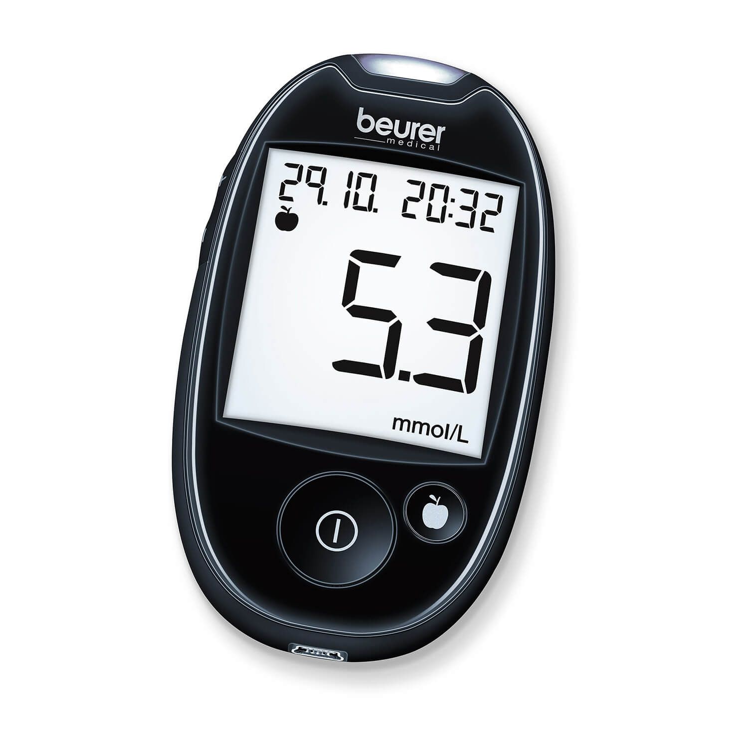 Il moderno dispositivo di misurazione della glicemia beurer GL 44 mmol/L per la gestione del diabete a colpo d'occhio. Il display retroilluminato garantisce la buona leggibilità dei livelli di zucchero nel sangue e le strisce illuminate per la misurazione comoda e semplice. Strip di prova extra larghi per la facile importazione delle strisce senza codice nel dispositivo. Disponibile in tre colori bianco, nero e viola.