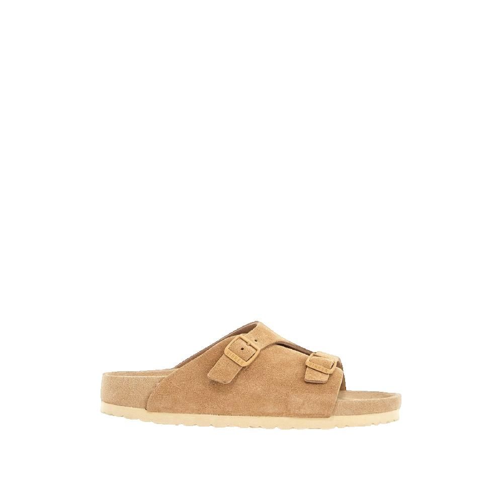 Claquettes beige in pelle scamosciata da uomo Birkenstock con fibbia regolabile.