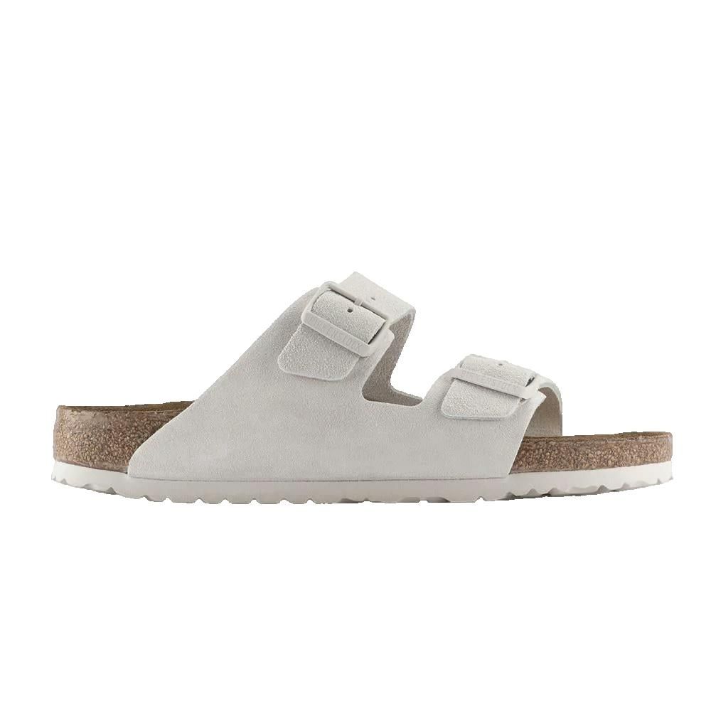 Sandali Birkenstock Arizona Normale da uomo in camoscio grigio, comodi ed eleganti per l'estate.