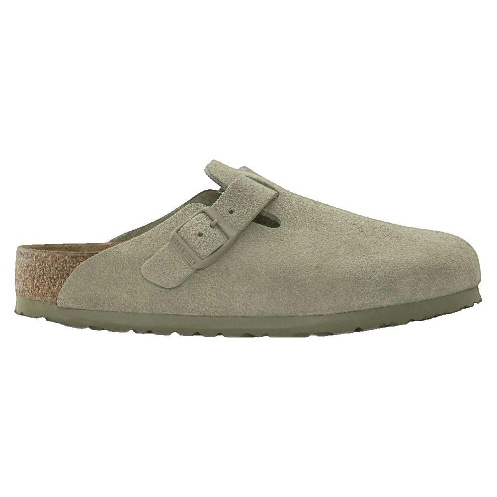 Mules Boston Birkenstock in cuoio scamosciato verde, unisex, comode e di tendenza.
