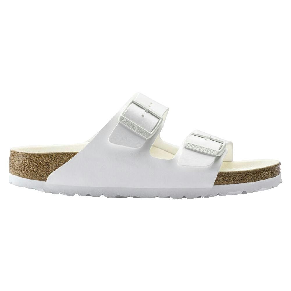 Sandali Birkenstock Arizona in pelle bianca, comodi ed eleganti per uso quotidiano.
