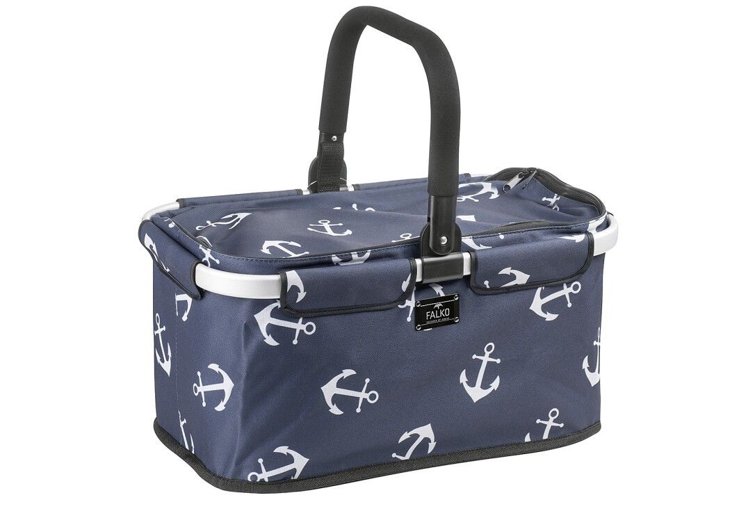 Der Falko Premium Einkaufskorb ist sehr leicht und platzsparend verstaubar, da man ihn problemlos zusammenfalten kann. Die stabile Konstruktion, das robuste und abwaschbare Material, das praktische Innenfach mit Reißverschluss zum sicheren Aufbewahren von Geldbörsen und Schlüsseln, der ummantelte Alu-Tragebügel für eine angenehme Haptik und nicht zuletzt das Fassungsvermögen, machen den Falko Einkaufskorb „Premium“ zu einem gern gesehenen Shopping Begleiter.Technische Details: Name Wert Marke GENIUS Farbe dunkelblau Materialmix Aluminium, Polyestergewebe Länge 48 cm Breite 28 cm Höhe 27 cm Gewicht 1.026 kg