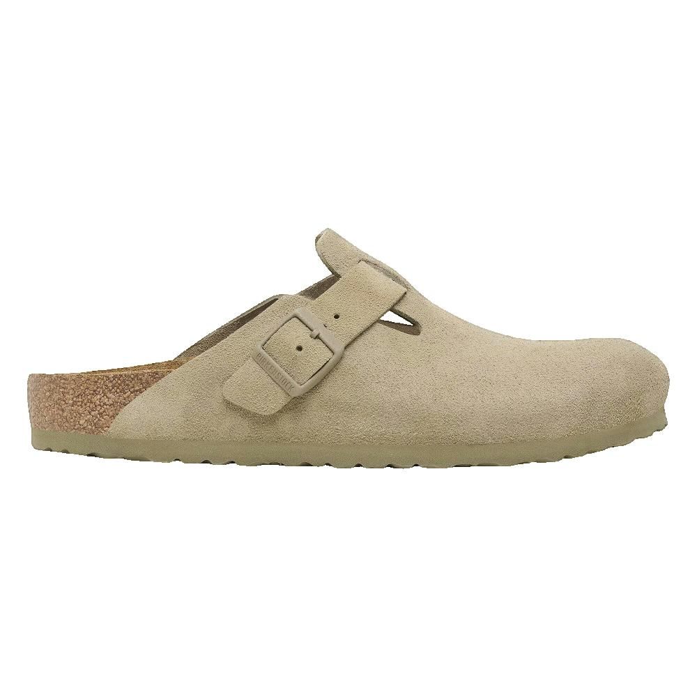 Sandali Birkenstock Boston da uomo in camoscio vellutato kaki, comfort e stile per l'uso quotidiano.