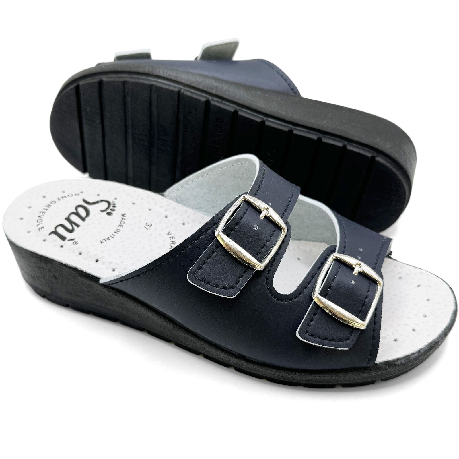 Sanì Ciabatte in Vera Pelle con Doppia Fascia e Fibbia Regolabile