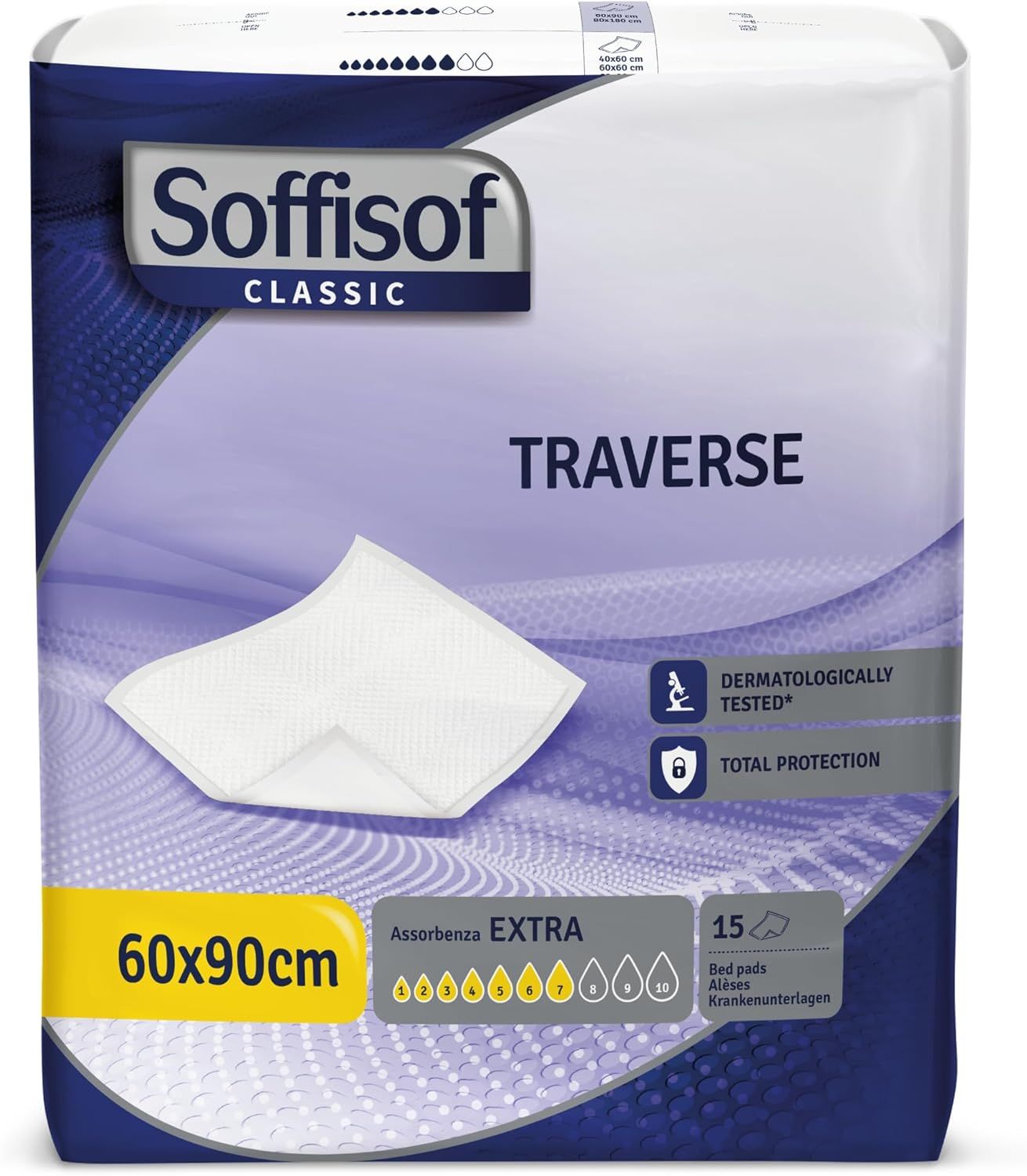 Soffisof Bed è la soluzione affidabile per proteggere materassi, poltrone e sedute da perdite di urina o altri liquidi. Le traverse assorbenti monouso sono disponibili in due formati per adattarsi a ogni esigenza: 60x90 cm per una copertura mirata e 80x180 cm con lembi rimboccabili per una protezione totale del letto.