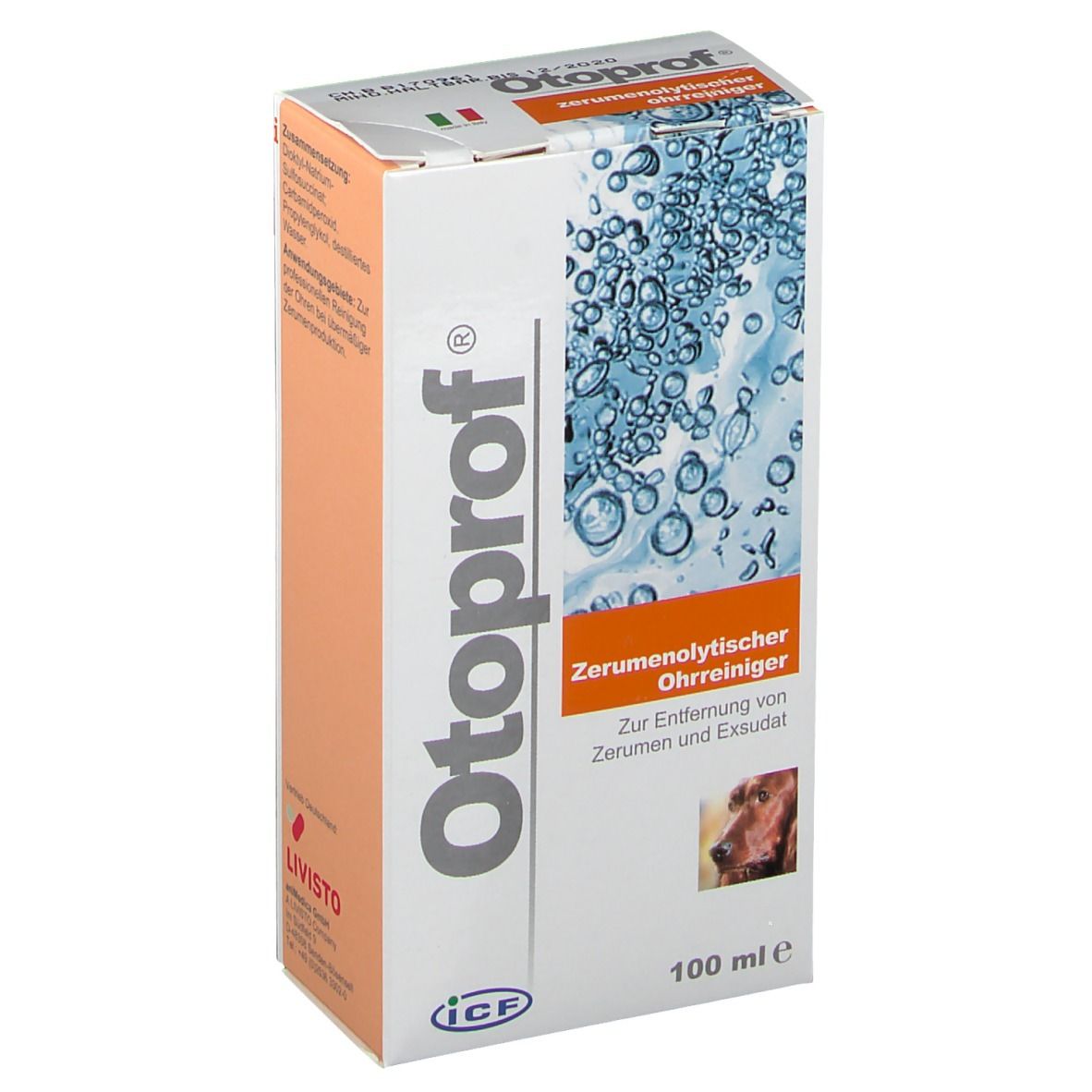 OTOPROF SOLUZIONE AURICOLARE 100 ML OTOPROFOtoprof Descrizione Pulitore dell'orecchio per cani e gatti ed è utilizzato anche in caso di otite. Consente una rimozione particolarmente delicata di cerume eccessivo dal canale uditivo esterno. Ingredienti Squalane, acido salicilico, estratto di camomilla, tannino. Modalità d'uso Agitare prima dell'uso. Riempire il canale uditivo e massaggiare la base dell'orecchio delicatamente. Rimuovere il residuo disciolto con un panno di cotone o lana morbida. Utilizzare a seconda della richiesta 2-3 volte a settimana. Formato Flacone da 100 ml. Cod. PP1000001