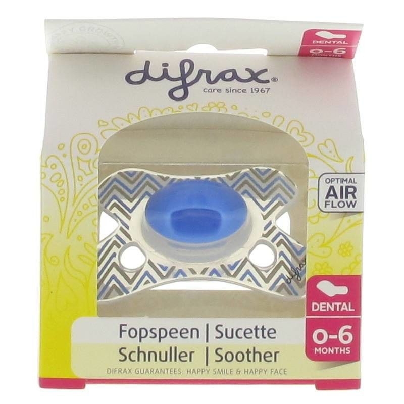 Difrax Pacifier Dental Mini 0-6m Blue Zigzag