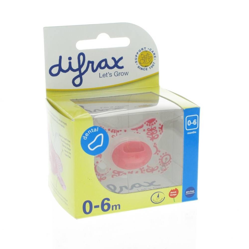 Difrax Pacifier Dental 0-6m Red Flowers