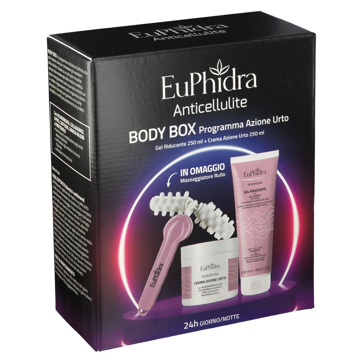 Body Box è il programma Euphidra per contrastare in modo efficace e completo gli inestetismi della cellulite, costruito per garantire una routine completa e un migliore assorbimento dei prodotti. In omaggio Massaggiatore Rullo.