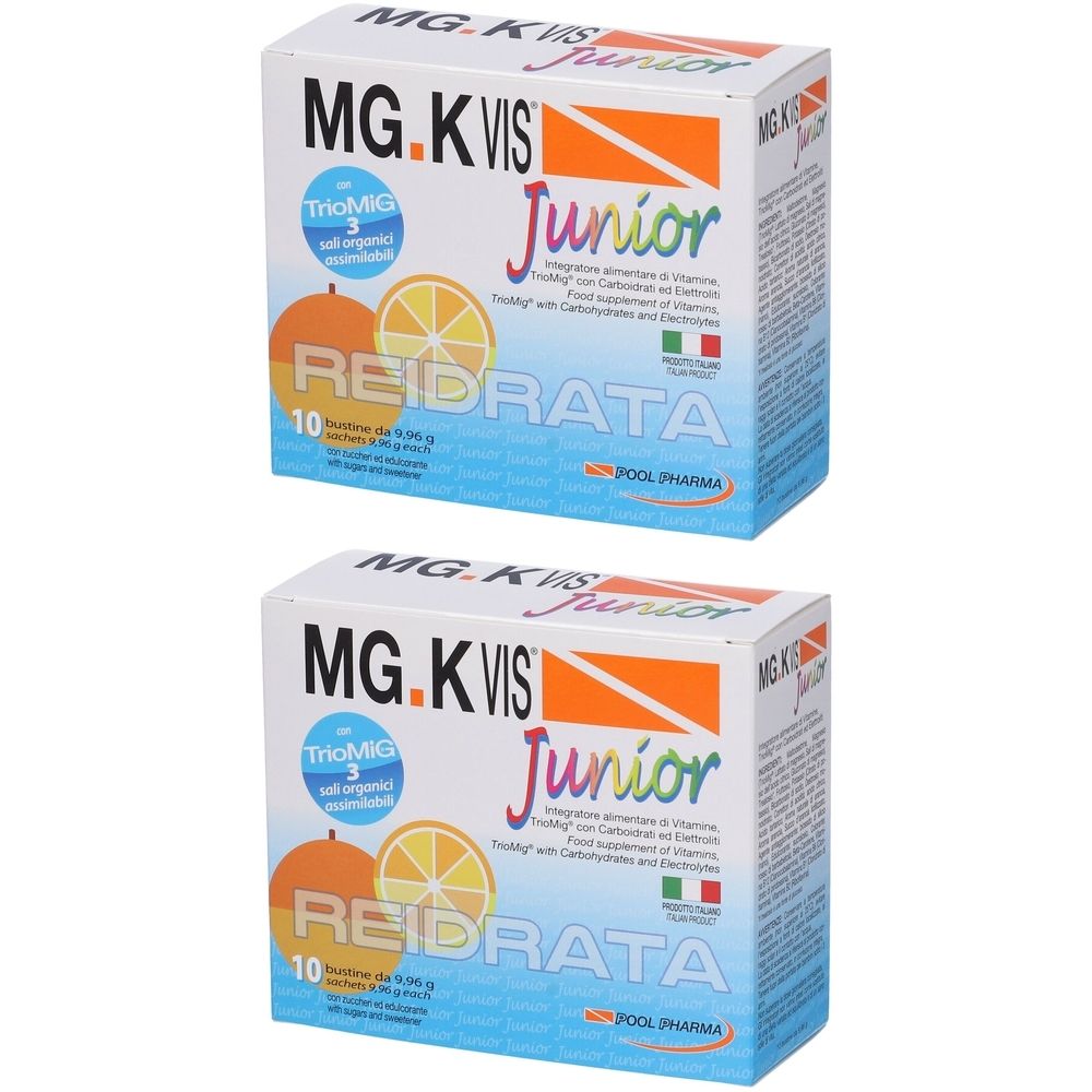 MG.K Vis Junior è un integratore alimentare in bustine a base di 3 sali organici assimilabili di Magnesio (TrioMig®: Sali di Magnesio dell’acido citrico, Magnesio gluconato, Magnesio lattato) e Vitamine del gruppo B, con Elettroliti (Potassio e Sodio) e Carboidrati. Il prodotto è specificatamente formulato per la fase della crescita e dello sviluppo, in particolare per ragazzi che praticano attività fisica.