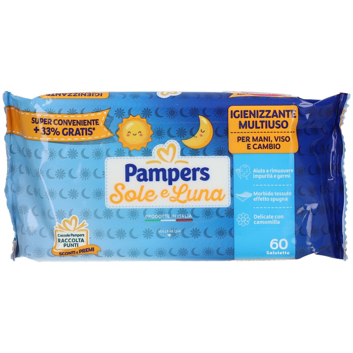 HomeBambino e MammaIgiene del BambinoProtezione e CambioSalviette UmidificatePampers Sole e Luna + Effetto Spugna