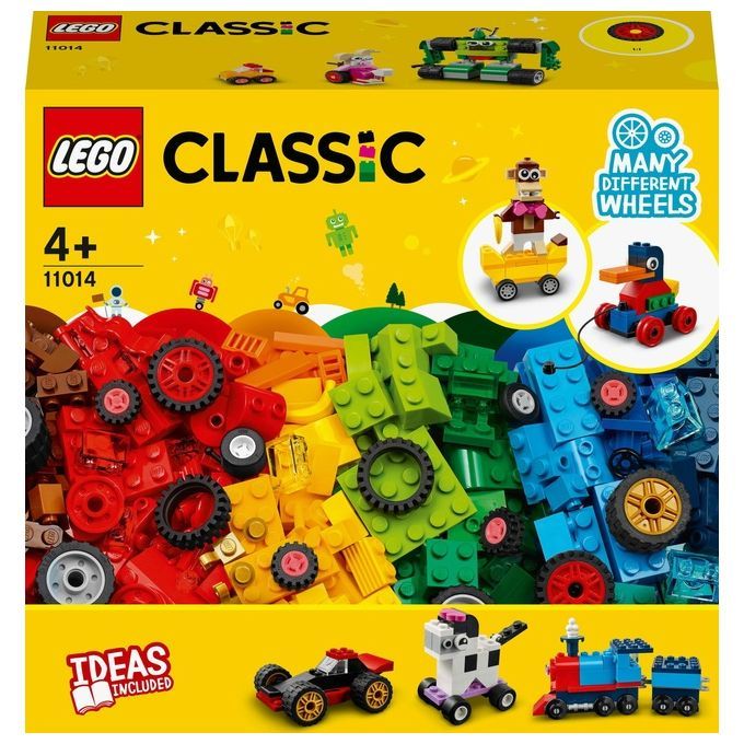 Il set di costruzione Mattoncini e ruote LEGO® Classic (11014) è il regalo ideale per i bambini che amano il gioco pratico. E con 9 idee di costruzione basate su ruote, oltre a mattoncini ed elementi extra, offre ore di divertimento creativo a bambini e adulti.