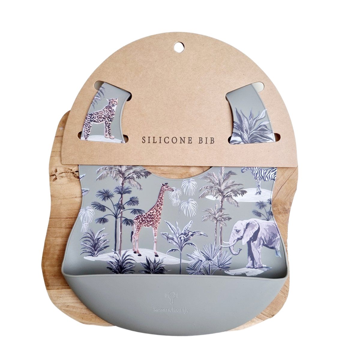Bavaglino in silicone con vaschetta raccogligocce - Jungle - Grigio Rendi i pasti del tuo bambino più facili e piacevoli con il nostro pratico bavaglino in silicone. Questo bavaglino, decorato con adorabili motivi di cervi e procioni su uno sfondo beige, è perfetto per un uso quotidiano. Offre sia funzionalità che stile.