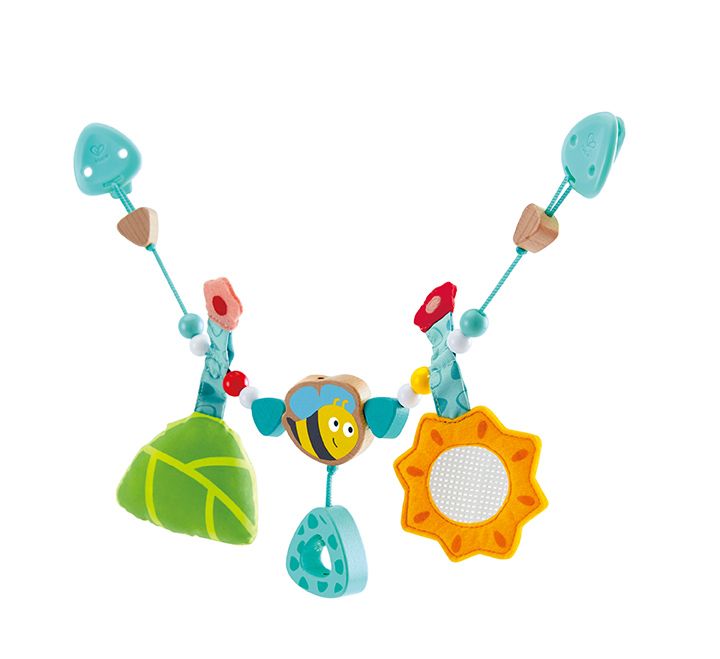 Questa catena per carrozzina stimola i sensi del tuo bambino e può essere facilmente attaccata alla carrozzina e al lettino. I colori vivaci e le forme come fiori, girasole, bombi e foglie invitano il tuo bambino a afferrare.