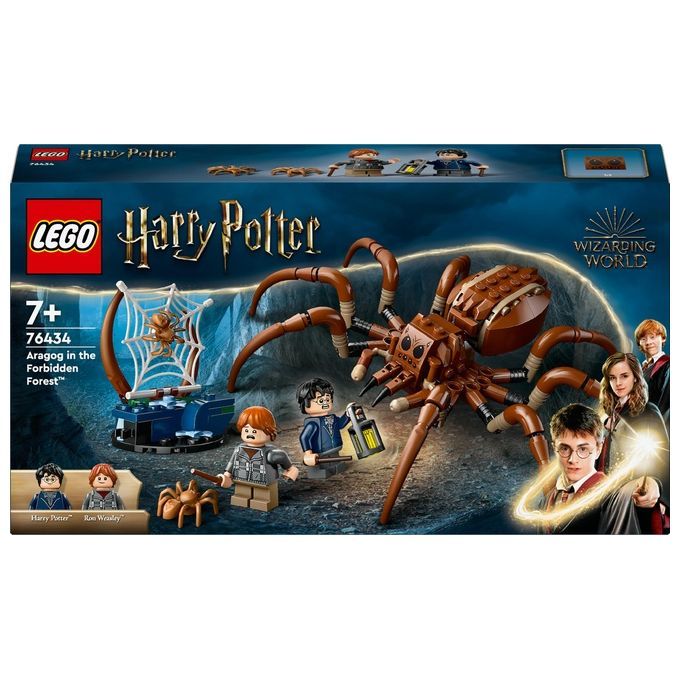Lascia che il tuo giovane mago, strega o Babbano viva magiche avventure nella Foresta Proibita LEGO® Harry Potter™ con questo set di gioco del ragno Aragog (76434). Un regalo magico per i bambini, le bambine e tutti i fan di Harry Potter dai 7 anni in su, contiene il personaggio giocattolo LEGO in mattoncini più grande e realistico di sempre, Aragog, con gambe, zanne e pedipalpi snodabili, oltre alle minifigure di Harry Potter e Ron Weasley™, ognuno con volti allegri o spaventati, oltre a bacchette magiche e un elemento lanterna. Il set include anche una piccola scena costruibile della Foresta Proibita, 2 piccoli di ragno e una ragnatela per tante altre incantevoli possibilità di gioco.