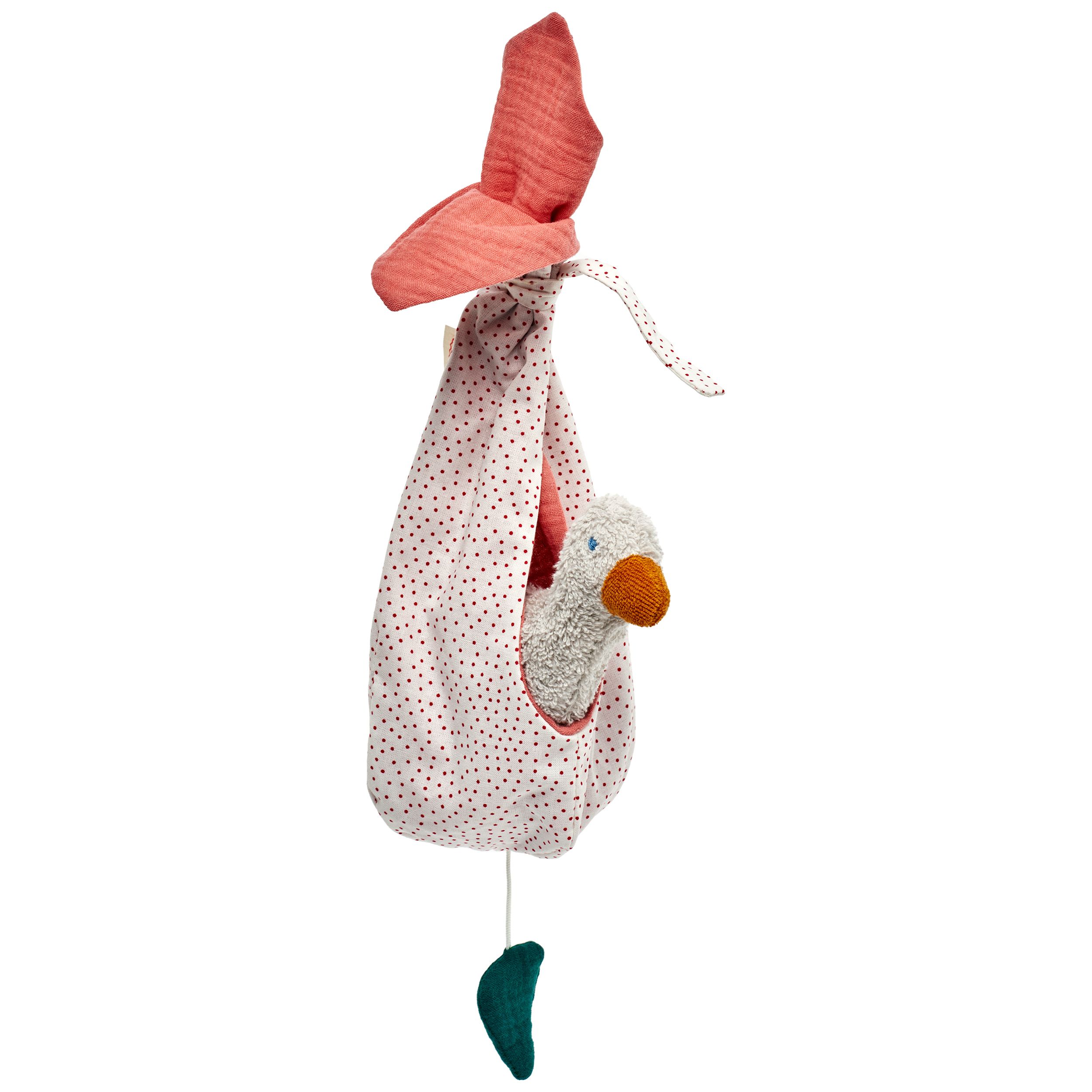 Carillon e giocattolo coccoloso in uno: il piccolo anatroccolo aspetta solo di poter venire a letto con te. Perché poi il suo nido suonerà la melodia di Buon Luna. Con i due cordini, il carillon può essere facilmente fissato ovunque. Dopo aver coccolato, l'anatroccolo torna semplicemente nel nido. Questo è realizzato in cotone a pois e muslin ed è un bellissimo accessorio in ogni stanza dei bambini.
