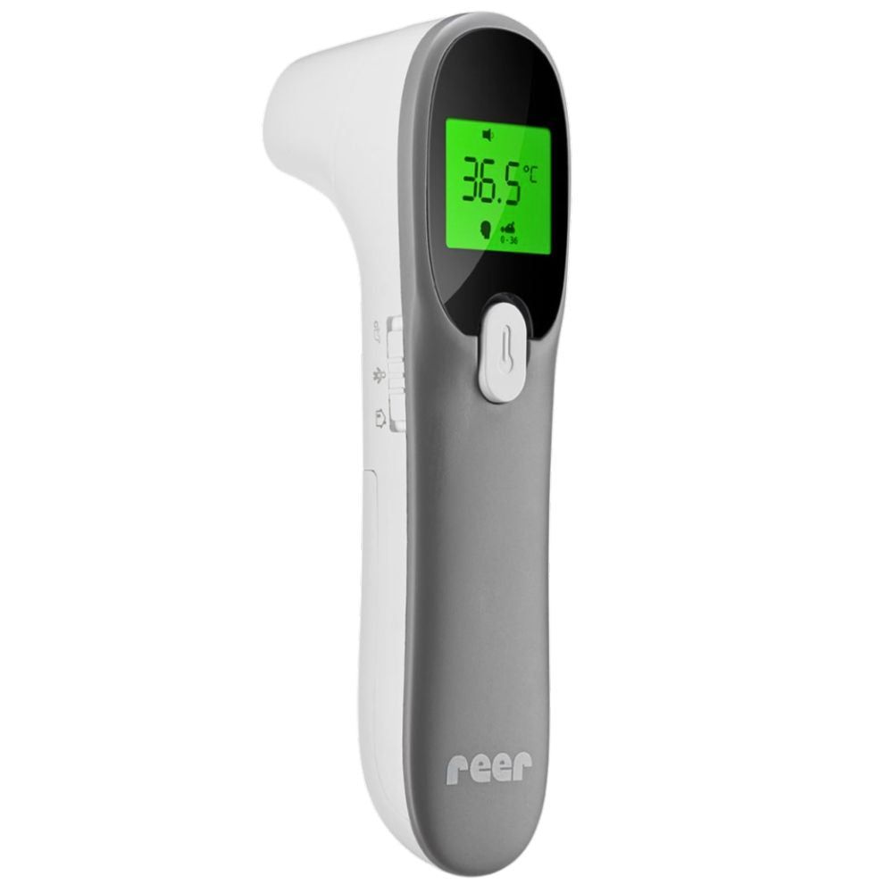 Il termometro a infrarossi reer 4in1 Color MaxTemp combina quattro funzioni in un unico dispositivo. Misura la temperatura corporea nell’orecchio o sulla tempia, ma può essere utilizzato anche per la temperatura delle superfici e dell’ambiente. In questo modo i genitori tengono sempre sotto controllo la temperatura del bambino – in modo delicato, indolore e affidabile. Con modalità bebé integrata, display retroilluminato e allarme febbre visivo e acustico, è particolarmente adatto a neonati e bambini piccoli.