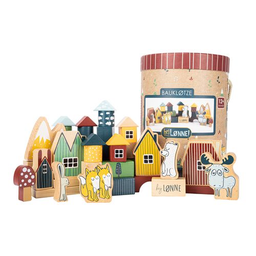 Komplett zum Liebhaben – Kinderspielzeug Baby mit Story, Holzbausteine ab 1 Jahr, 56 Holzsteine, best. aus den fünf hej LØNNE!-Figuren, deren Häuser und verschiedenen Formen, inkl. Minibuch, Baumwollbeutel und Schlüsselanhänger. Durchdacht - beliebig kombinierbare Holzklötze aus Wacholder- und Buchenholz, mit abgerundeten Kanten, in allerliebst gestalteter, stabiler Aufbewahrungs-Box, mit Kordel für einfachen Transport. Spielend lernen - Spiel und Spaß mit Figuren aus der „hej LØNNE!“-Serie. Ganzheitliches Konzept, skandinavisch designt, großer Lerneffekt, fördert Hand-Auge-Koordination, Motorik und Kreativität. Für unsere Kleinsten - Genderneutrales Baby Spielzeug aus hochwertigem, schadstofffreiem Holz, kindgerechte Formen und ausgewählte, wasserbasierte Farben, daher absolut unbedenklich. Zauberhafte Geschenkidee - Sinnvoll und entwicklungsfördernd, großartiges Geschenk von Eltern und Familienangehörigen, Paten und Freunden, perfekt auch für die Kita.Technische Details: Name Wert Marke HEJ LØNNE Materialmix Holz Länge 19 cm Breite 18 cm Höhe 23 cm Gewicht 1470 g Lieferumfang 56 Holzsteine, best. aus den fünf hej LØNNE!-Figuren, deren Häuser und verschiedenen Formen, inkl. Minibuch, Baumwollbeutel und Schlüsselanhänger Eigenschaften