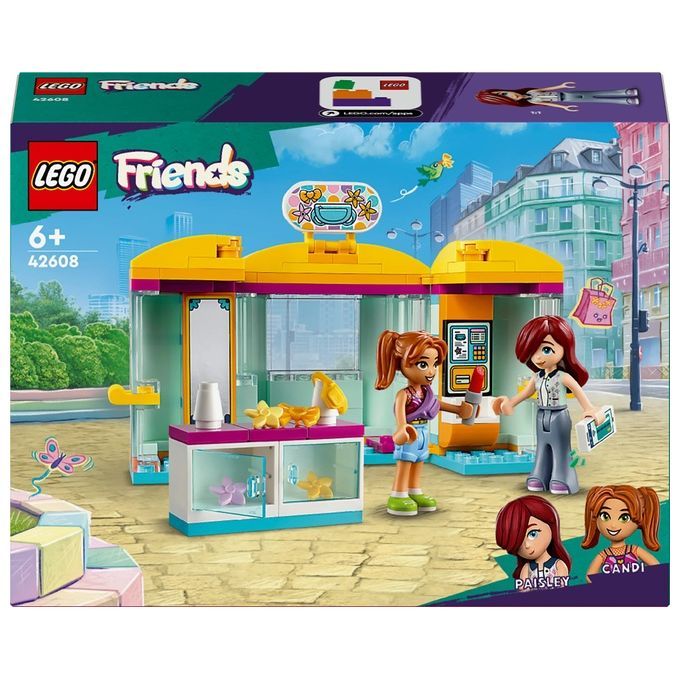 Fai un regalo ai bambini creativi con il giocattolo costruibile Il piccolo negozio di accessori LEGO® Friends (42608) per i bambini e le bambine dai 6 anni in su. I bambini che amano i negozi di articoli di bellezza si divertiranno ad aiutare Paisley e Candi ad acquistare un nuovo marsupio e accessori per capelli. I bambini possono inscenare la storia mentre i personaggi usano lo specchio per controllare il loro nuovo look, quindi pagare utilizzando il proprio smartphone alla cassa self-service.