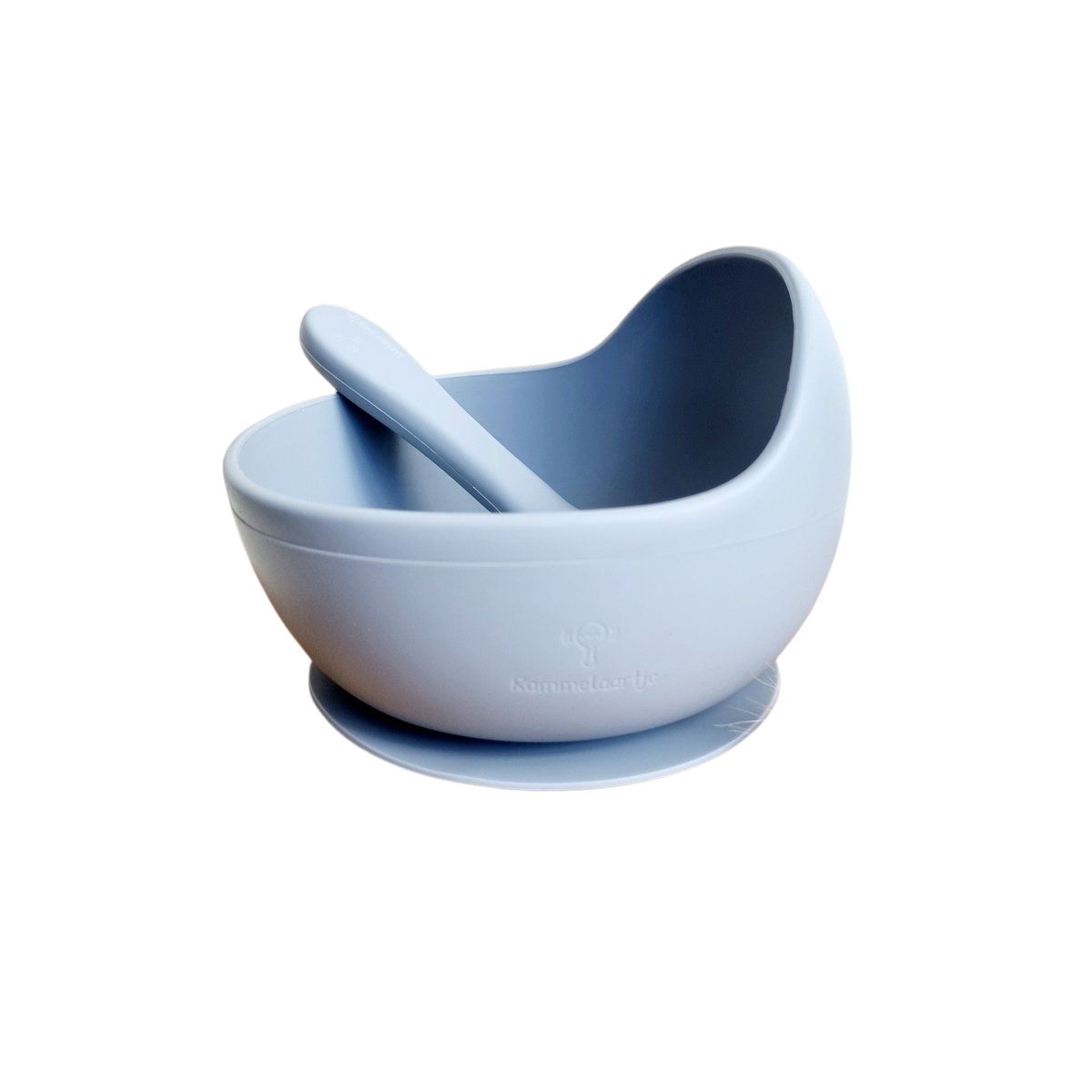 Ciotola in silicone con ventosa e cucchiaio - Grigio Blu