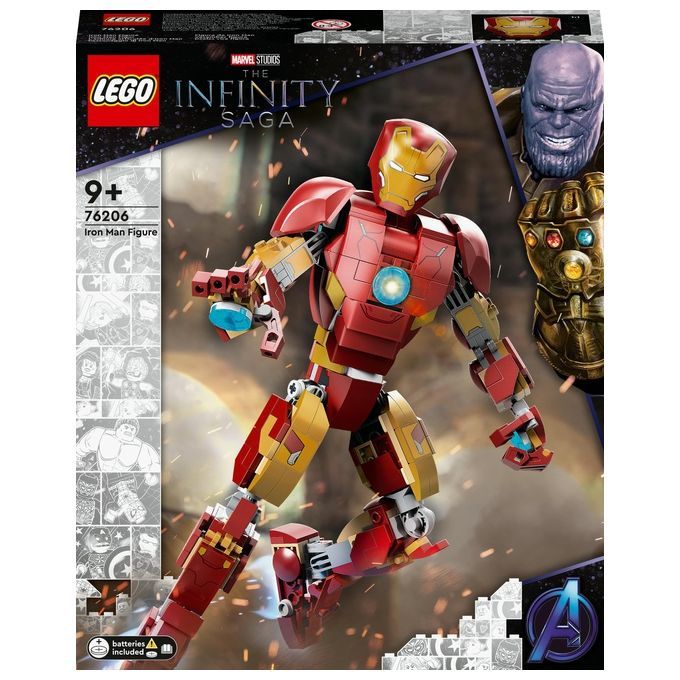 Fai un super regalo ai fan di Iron Man dai 9 in su: un Iron Man tutto loro, alto 24 cm. Personaggio di Iron Man LEGO® Marvel (76206) è un giocattolo costruibile da portare ovunque, che riempie di autentica azione Marvel le avventure dei bambini.