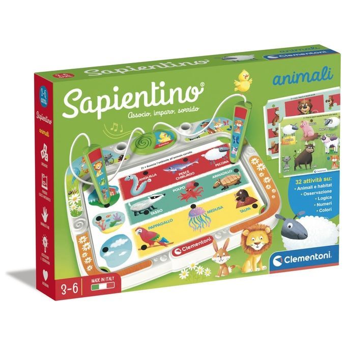 Sapientino è un gioco classico che non smette mai di coinvolgere i bambini e di farli imparare divertendoli. Un banchetto e 16 schede educative con 32 attività, per conoscere la natura con i divertenti spinotti parlanti. Toccando con le penne i tondini neri sulle schede, Sapientino avvisa il bambino se l'associazione è giusta con delle divertenti voci. La tecnologia elettronica delle penne è altamente sensibile e permette al bambino di correggere i propri errori e imparare in autonomia. Le schede educative propongono tante domande organizzate a difficoltà crescente e sono semplici e intuitive anche per i più piccoli.