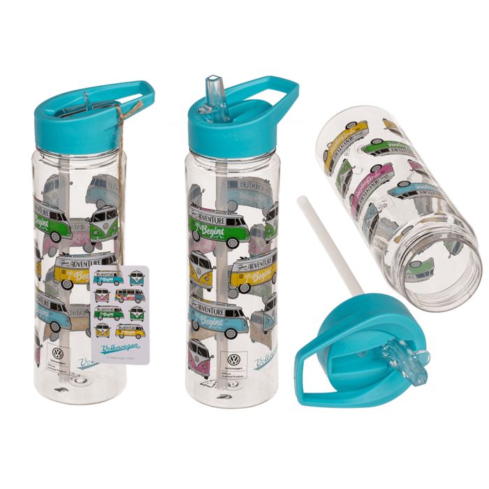 Borraccia, VW T1 Bus - Surf Adventure, per circa 550 ml, con cannuccia, circa 23 x 8 cm, in plastica