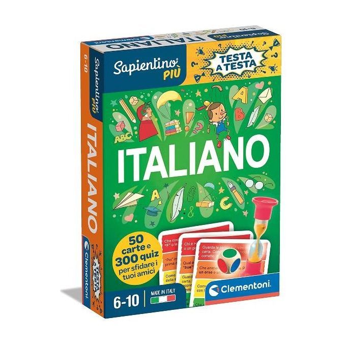 Carte quiz per sfidare gli amici in una divertente gara a tempo, rispondendo a divertenti domande sull'italiano. Il gioco contiene un mazzo da 50 carte, un dado con facce colorate, una clessidra. Le carte sono fronte-retro: da un lato presentano un'immagine, dall'altro 6 domande, alcune legate alla materia, altre riferite all'immagine. La collezione di carte AllenaMente è studiata sui programmi della scuola primaria.