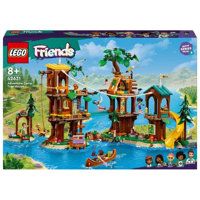 Un set da campeggio per bambini: il giocattolo La casa sull’albero al campo avventure LEGO® Friends i bambini e le bambine dagli 8 anni in su contiene 5 mini-doll, tanti animali, una canoa e accessori sportivi