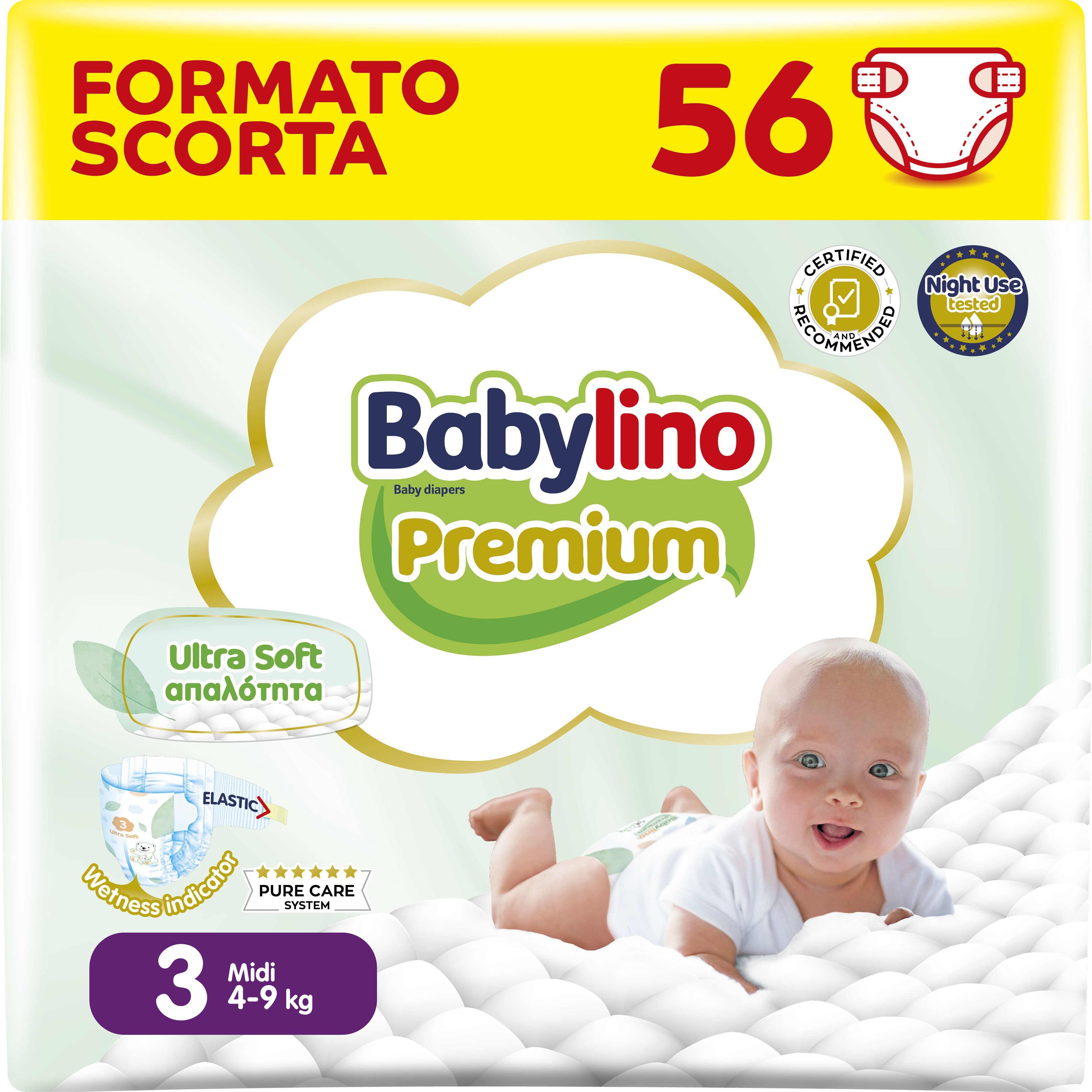 HomeBambino e MammaIgiene del BambinoProtezione e CambioPannoliniBabylino Premium, Pannolini Taglia 3 con filtrante ULTRA SOFT, Midi (4-9kg), 56 Unità