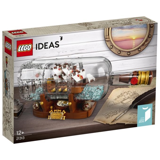 Porta avanti la tradizione nautica costruendo la nave in bottiglia LEGO® Ideas, contenente una nave dettagliata con gli alloggi del capitano, cannoni, alberi, coffa ed elementi vela stampati. Il fan che ha ideato questo set, Jake Sadovich, si è ispirato a una vera nave in bottiglia che aveva costruito anni prima e ha deciso di crearne una replica in mattoncini LEGO. La sua creazione ha raggiunto i 10.000 voti necessari per la qualificazione con LEGO Ideas.