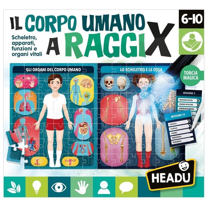 Ricomponi il grande puzzle, osserva le immagini e scopri come è affascinante il corpo umano: i suoi organi vitali, gli apparati, il sistema scheletrico e tanto altro ancora. In più, con la torcia magica, puoi portare a termine le “missioni” e osservare anche quello che non si vede a occhio nudo!
