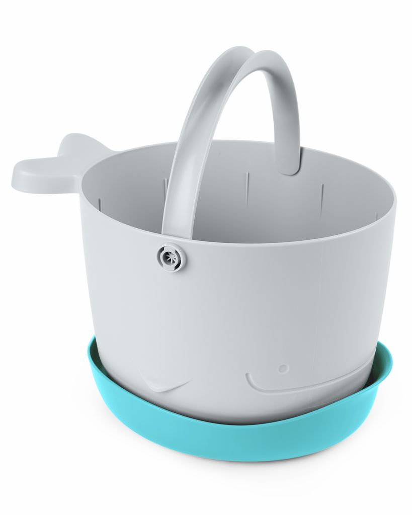 Con questo pratico secchio, i giocattoli da bagno del bambino rimangono sempre a portata di mano e asciutti. Il secchio dal divertente design a forma di balena può contenere una grande quantità di giocattoli e permette all'umidità di fuoriuscire attraverso il fondo perforato. L'acqua può accumularsi nel coperchio inferiore separato.