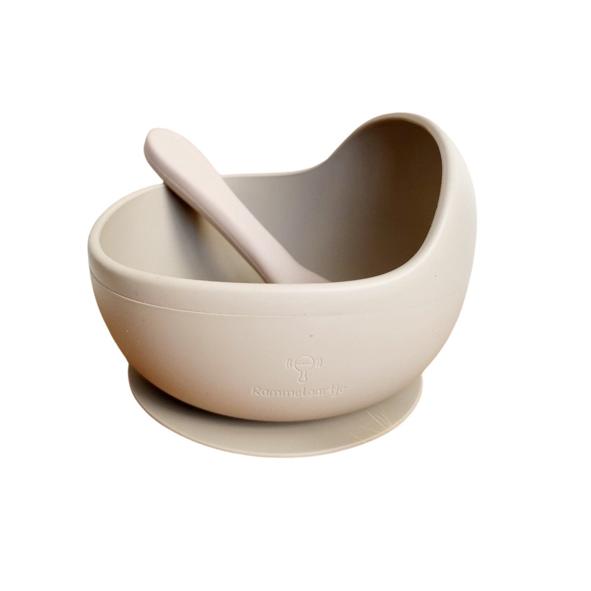 Ciotola in silicone con ventosa e cucchiaio - Sabbia Questa ciotola in silicone, completa di cucchiaio flessibile, aiuta a introdurre cibi solidi e incoraggia il tuo bambino a mangiare in modo autonomo. La ventosa assicura che la ciotola non scivoli o si rovesci. Ideale per l'uso su vassoi di seggioloni o tavoli.