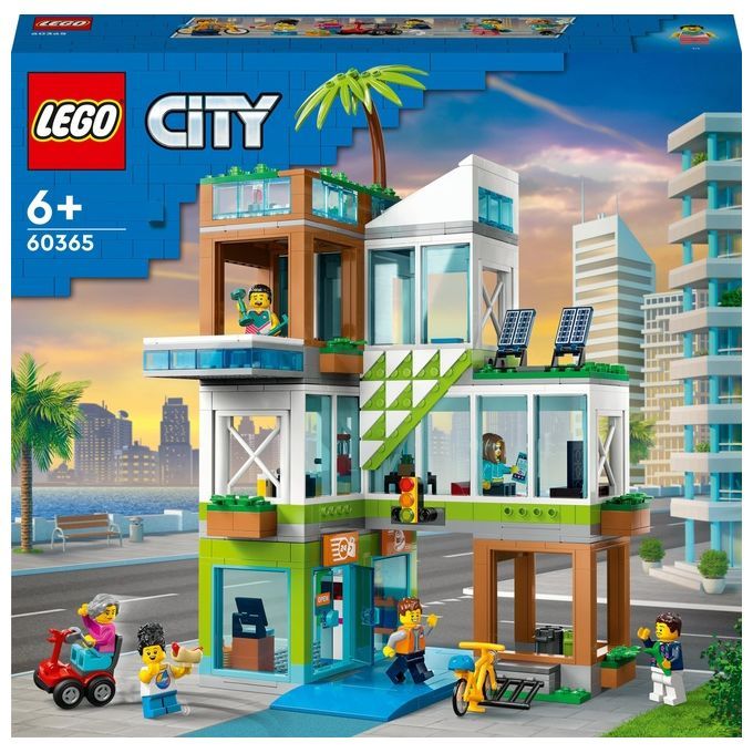 Questi Condomini di altissima qualità 6+ LEGO® City (60365) sono dotati di moduli con stanze combinabili e numerosi dettagli interni per il gioco di fantasia, tra cui un minimarket, un soggiorno, una cucina, una camera da letto e un bagno completo di toilette e vasca. Il set include anche uno scooter di mobilità, una bicicletta, 6 minifigure e una base stradale LEGO per collegarlo ad altri set della gamma LEGO City.