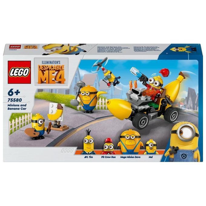 Regala a un fan dei Minions il set I Minions e l’auto banana Cattivissimo Me 4 LEGO® (75580). Questo giocattolo creativo per i bambini contiene 4 Minions, una macchinina e accessori. È un divertente regalo basato su film per i bambini e le bambine dai 6 anni in su e per i fan di Cattivissimo me 4 della Illumination.