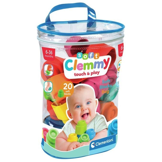 Clementoni Clemmy Bag 20. Età consigliata (min): 0,6 anno/i, Numero di pezzi: 20 pz, Materiali: Gomma, Colore del prodotto: Multicolore