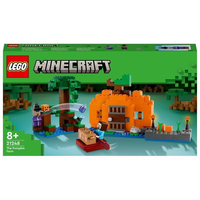Ambientato nel famigerato bioma paludoso del gioco, questo giocattolo altamente riconfigurabile presenta il personaggio di Steve in una fattoria di zucche costruita attorno a una casa a forma di zucca. La casa ha un interno arredato, tra cui un letto, un banco da lavoro, una fornace e una rana luminosa. Fuori c’è un campo di zucche che Steve coltiva con la sua zappa. Le opportunità di gioco diventano ostili quando arriva una strega lancia-pozioni che Steve respinge usando il suo arco. Il set include anche una rana, una barca e uno scrigno contenente un uovo e lo zucchero, per dare ai bambini l’opportunità di preparare una torta di zucca! Per tanto divertimento digitale in più, i costruttori possono ingrandire, ruotare i set in 3D e monitorare i loro progressi utilizzando la divertente app LEGO Builder.