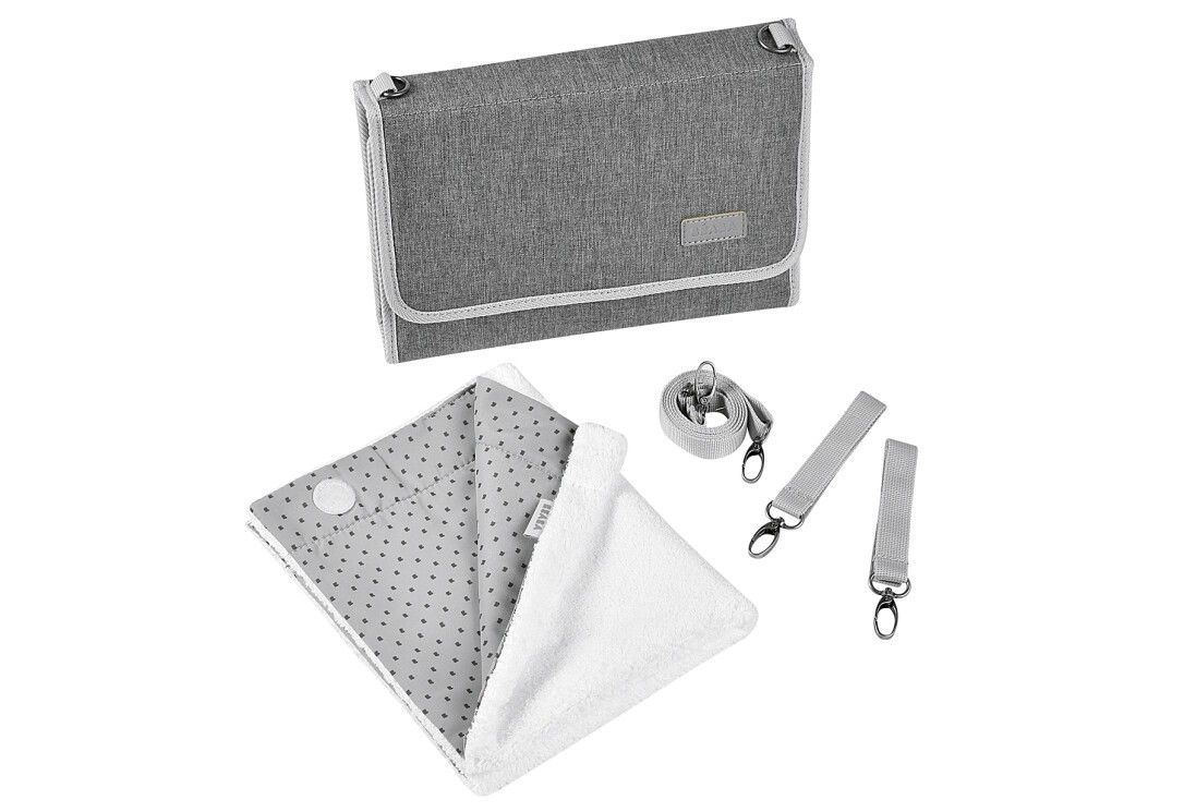 Der Wickelbeutel für unterwegs. Praktisch und kompakt - die wichtigsten Wickelutensilien können in einer kleinen Tasche für unterwegs mitgenommen werden. Vielseitig verwendbar: Sie kann in der Hand oder über der Schulter getragen werden und lässt sich am Kinderwagen befestigen. Die Beutel werden geliefert mit: 1 Wickelunterlage mit abnehmbarem Frotteehandtuch aus 100 % GOTS-zertifizierter Bio-Baumwolle, 2 Kinderwagenbefestigungen, 2 Netztaschen mit Reißverschluss, die jeweils 2 Windeln und kleine Pflegeprodukte aufnehmen können. 1 abnehmbarer Schultergurt, um die Tasche über der Schulter, als Umhängetasche oder in der Hand zu tragen.Technische Details: Name Wert Marke BEABA Farbe grau Materialmix Polyester Gewicht 485 g