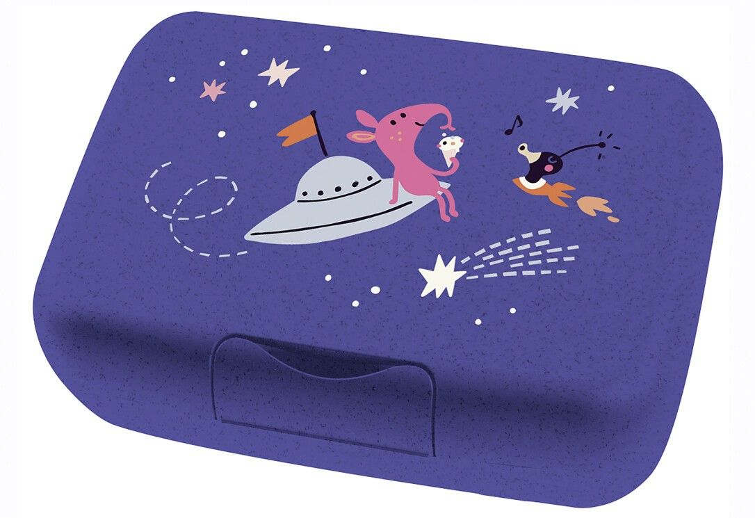 KOZIOL Luchbox Space con vassoio separatore - La spaziosa scatola per il pranzo mantiene freschi e appetitosi panini, snack, frutta e persino tramezzini. La chiusura a clip è incassata nello stampo, in modo che la scatola non possa aprirsi accidentalmente durante il trasporto. La forma arrotondata è un piacere al tatto ed evita fastidiosi urti durante il trasporto in borsa, nello zaino o in auto. Colore: blu organico. Materiale: bio-circolare organico. Dimensioni: (LxLxA): 19x13,5x6,6 cm.