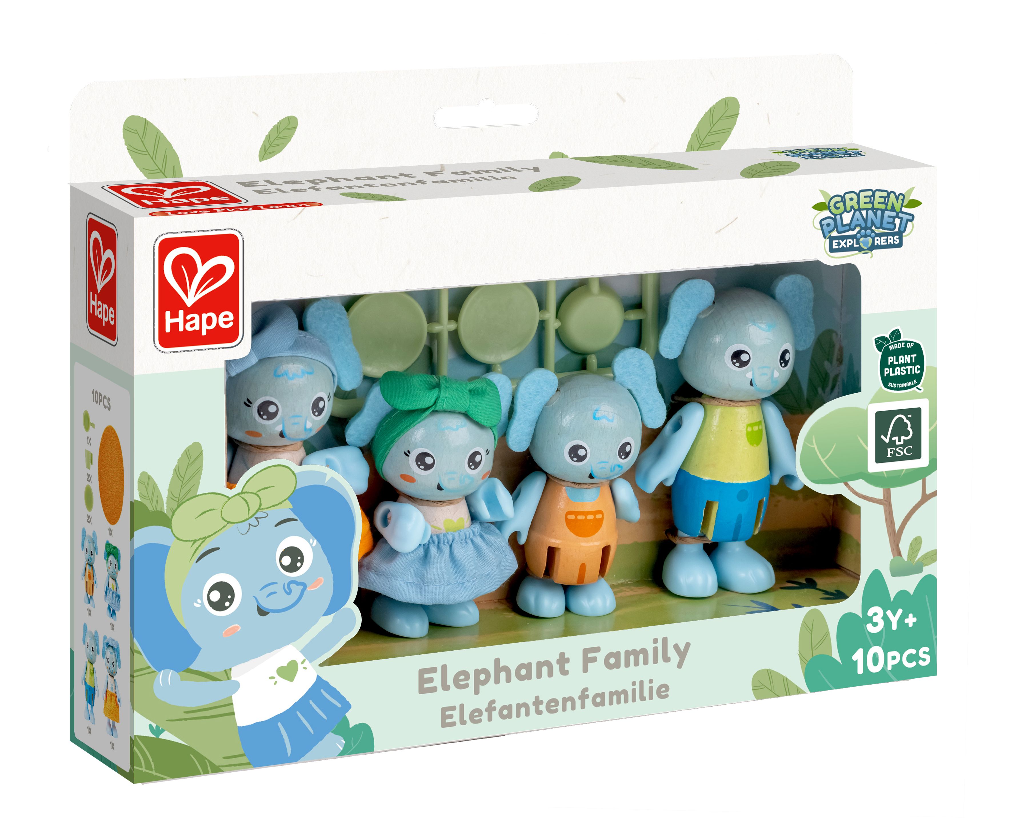 La famiglia di elefanti a quattro teste che trombetta insegna ai piccoli ambientalisti tutto sulla sostenibilità. Sono il complemento perfetto per ogni set di case delle bambole, poiché queste figure possono sedere, stare in piedi e tenere oggetti nelle loro mani.