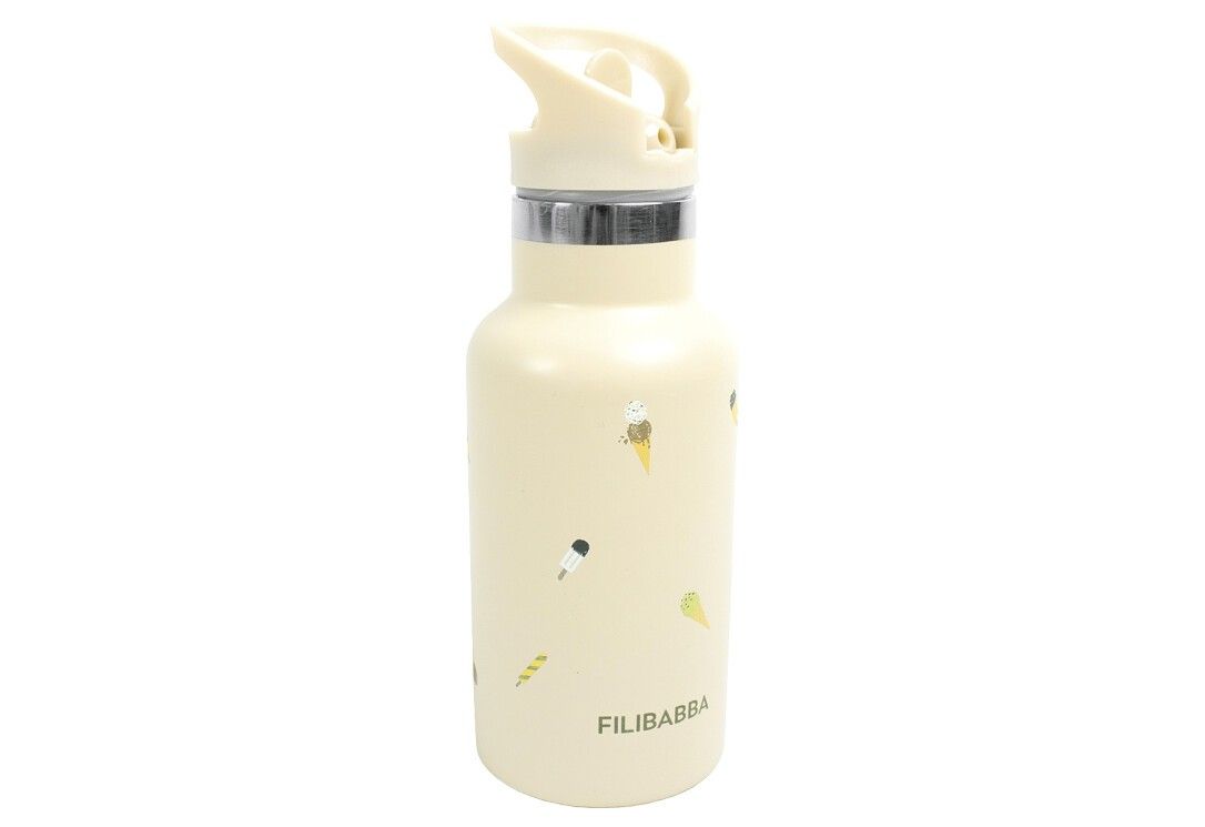 Dettagli tecnici: Marca: FILIBABBA Colore: beige Mix di materiali: acciaio inox / polipropilene Altezza: 21 cm Diametro: 7,3 cm Peso: 352 g Volume: 350 ml Caratteristiche: 2 chiusure: tappo classico a vite, coperchio con cannuccia integrata Caratteristiche di sicurezza: Si consiglia di lavare a mano