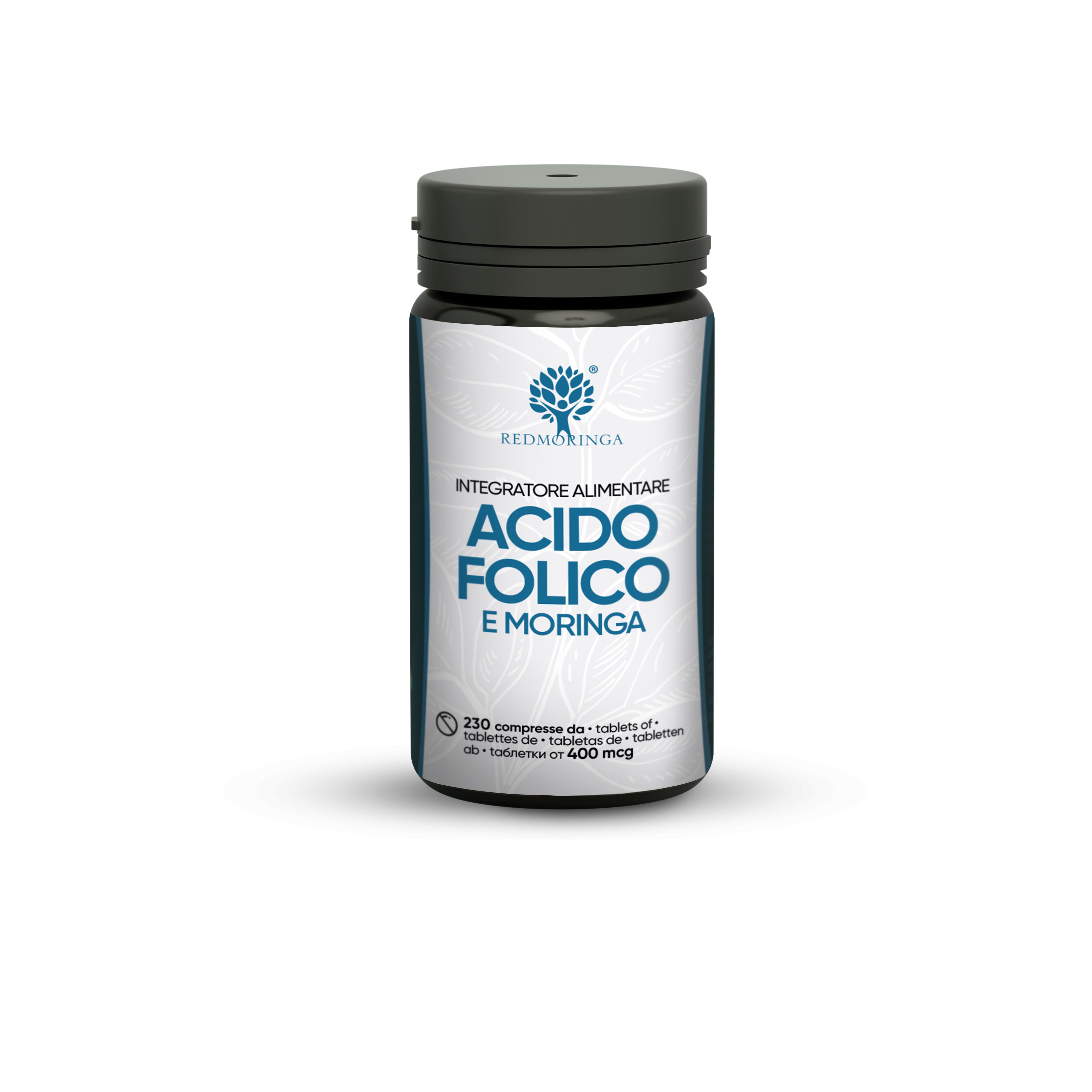 Le compresse di acido folico Redmoringa sono l'integratore ideale per le future mamme che desiderano sostenere in modo ottimale la propria salute e lo sviluppo del proprio bambino L'acido folico, noto anche come vitamina B9, svolge un ruolo cruciale nella divisione cellulare e nella formazione del sangue. Un maggiore fabbisogno di acido folico è essenziale, soprattutto durante la gravidanza, poiché favorisce il normale sviluppo del tubo neurale nel feto. Le nostre compresse di acido folico sono sviluppate appositamente per le esigenze delle donne durante la gravidanza. Ogni compressa contiene il dosaggio ottimale per soddisfare l'aumentato fabbisogno di acido folico, raccomandato dai principali esperti di nutrizione. Grazie alla lavorazione di alta qualità e alla purezza degli ingredienti è garantita una buona tollerabilità.