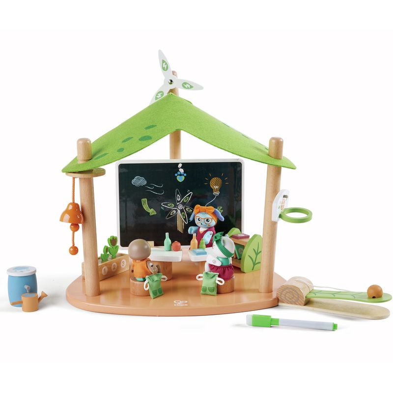La scuola sostenibile di Doris l'elefante fa parte della serie Green Planet Explorers. Questo set da gioco contiene una grande quantità di accessori, con cui i bambini possono imparare in modo interattivo qualcosa sull'energia verde e sul risparmio idrico. È composto per almeno l'80% da materiali rinnovabili per un'esperienza di gioco ecologica, divertente e istruttiva.