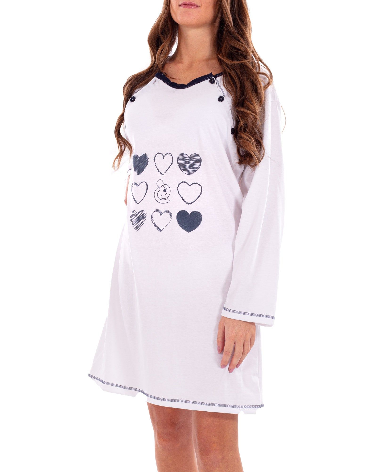 MYSANITY Camicia allattamento doppia apertura manica lunga Bianco