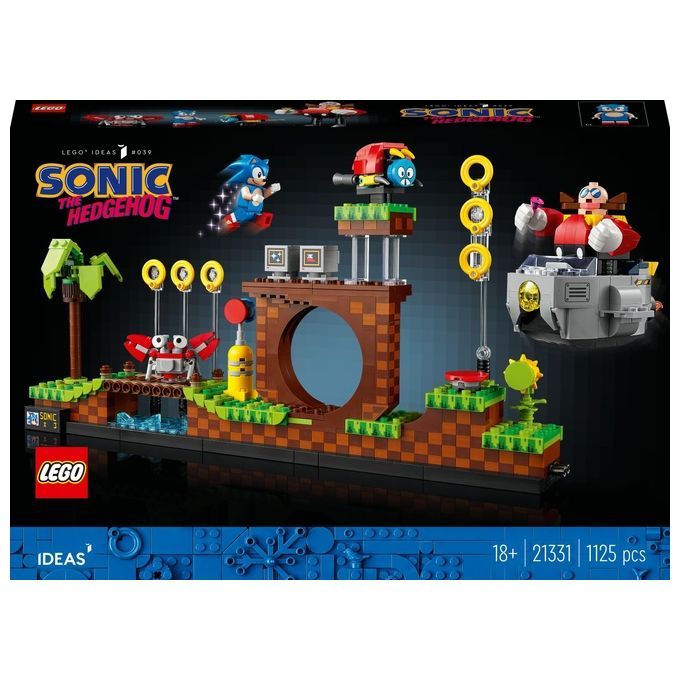 Celebra un'icona della cultura pop e mostra il gameplay di un vero classico con questo modello Sonic the Hedgehog™ - Green Hill Zone LEGO® Ideas (21331). Immergiti in un progetto senza distrazioni, ricreando i dettagli autentici della Green Hill Zone, tra cui un albero di palma, il giro della morte, anelli, schermi televisivi, l'Eggmobile del Dr. Eggman e una molla per i Super Sonic Jump.