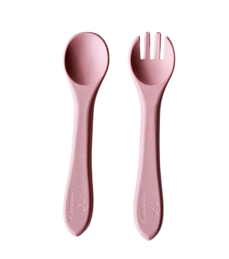 Set cucchiaio e forchetta in silicone Questo pratico set di posate in silicone è perfetto per imparare a mangiare. Le maniglie larghe sono comode da tenere in mano e il silicone è facilmente flessibile, il che favorisce l'autoapprendimento. Perfettamente combinabile anche con la nostra altra linea di stoviglie in silicone. Naturalmente, i nostri prodotti in silicone sono certificati e sicuri per i bambini!